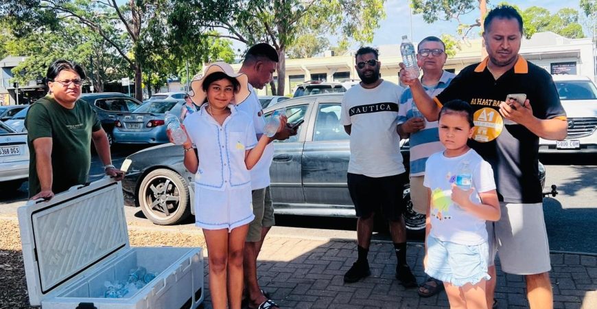 On 30 January 2026, with temperatures reaching 41 degrees, Punya Foundation organised its regular activity of free water distribution in South Australia. This event aligns with the hot days of summer, when access to drinking water becomes essential for people spending time outdoors and those relying on public transport.